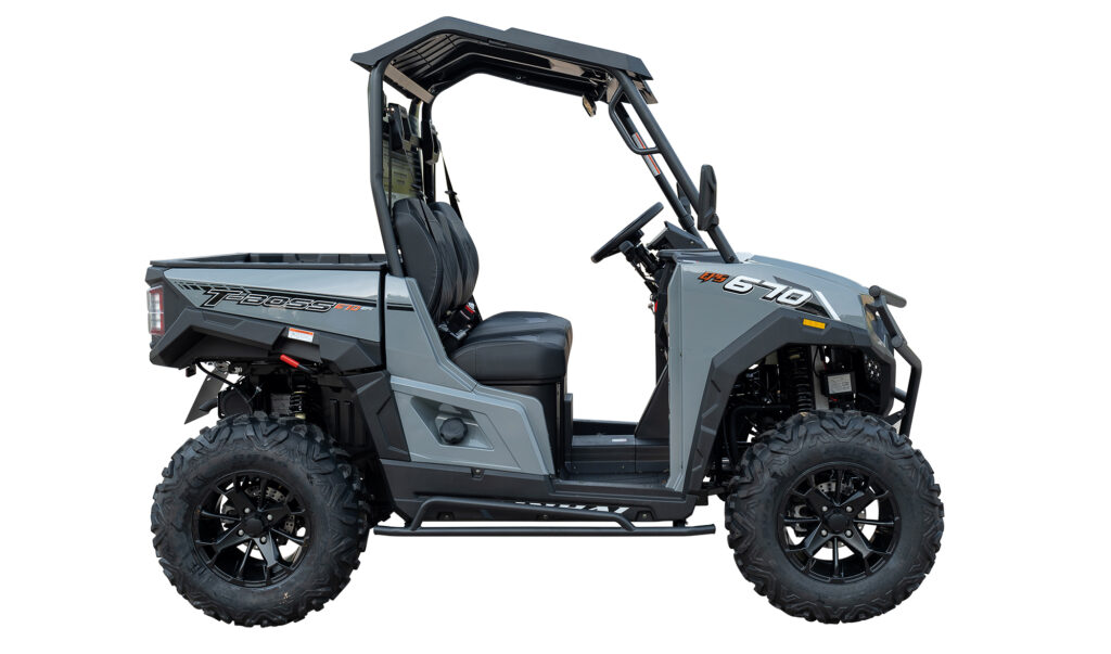 Linhai 670 T-BOSS är skapad för dig som kräver mer – mer kraft, mer uthållighet och mer användbarhet. Med en robust konstruktion och en kraftfull motor tar den sig fram obehindrat i både tuff terräng och krävande arbetsmiljöer. Oavsett om du arbetar på gården, transporterar last i skogen eller är ute på fritidsäventyr, levererar 670 T-BOSS på alla fronter. Med bekväma säten för två personer, gott om lastutrymme och en smart, användarvänlig layout är komforten alltid närvarande – även under långa arbetsdagar. Den följsamma fjädringen, den rejäla markfrigången och det stabila chassit gör körningen säker och smidig i alla lägen. Utrustad med praktiska funktioner som servostyrning (EPS), elektrisk vinsch, dragkrok och slitstarka offroad-däck, är Linhai 670 T-BOSS redo att bli din bästa arbetskamrat året runt. Och med sin moderna design och gedigna kvalitet gör den intryck – både när den jobbar och när den står still. Kort sagt: Linhai 670 T-BOSS är ett kraftpaket med intelligens – byggd för att leverera, oavsett vad dagen kräver.