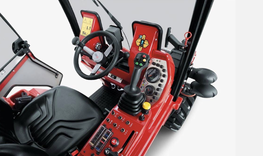 Joysticken och instrumentpanelen är integrerade med sätet och justerbar höjd för maximal ergonomi under användning. Joysticken är elektrohydraulisk och proportionell, smidig och exakt att använda . Den sidomonterade instrumentpanelen och arrangemanget av lyftbomscylindrarna bidrar till fri sikt över redskapen. Sitsen är utrustad med justerbart svankstöd, nackstöd, fjädring och ryggstöd och finns även i uppvärmd version på begäran.